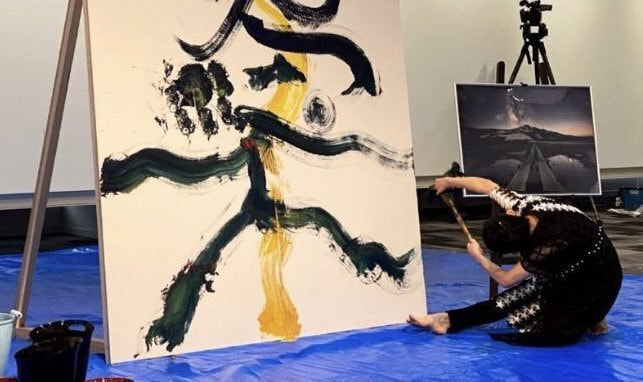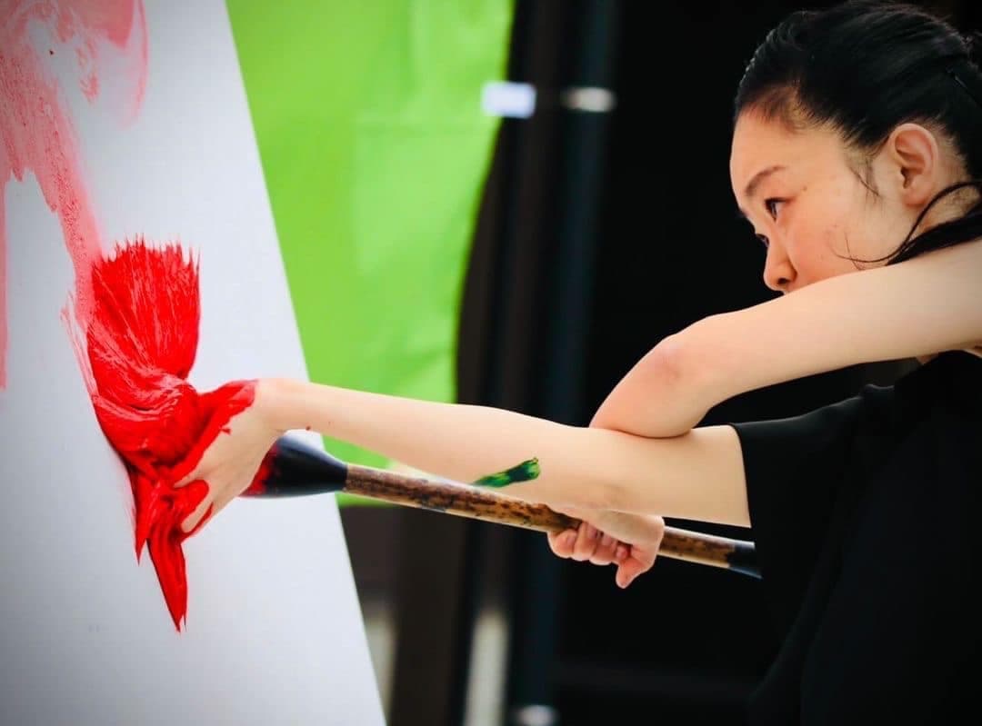 毛筆パフォーマンスも定評があり